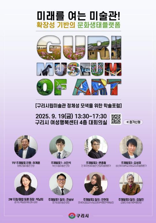 포럼에서는 구리시립미술관 건립 필요성, 디지털 시대의 문화생태플랫폼 가능성, 시민과 예술가가 함께하는 창의융합형 문화공간의 청사진 등을 중심으로 전문가 발제와 토론이 진행될 예정이다.