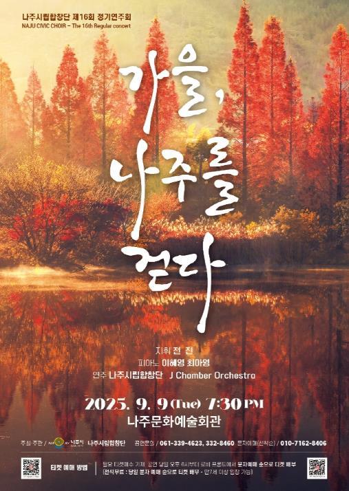 [중앙뉴스라인, 우제헌기자] 전라남도 나주시가 오는 9일 저녁 7시 30분 나주문화예술회관에서 나주시립합창단 제16회 정기연주회 ‘가을 나주를 걷다’를 개최한다.