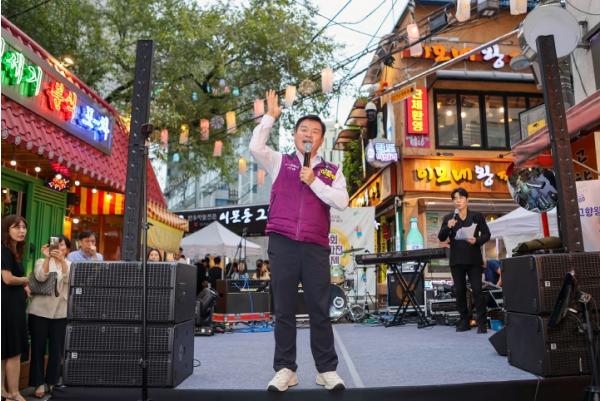 [중앙뉴스라인, 우제헌기자] 서울 동대문구는 5일 회기역 파전골목 일대에서 ‘제1회 회기 파전 가요제’를 성황리에 개최했다. 서울시'2025년 골목상권 행사 지원 사업'에 선정된 이번 행사는 휘경 골목상권 활성화를 위해 마련됐다.