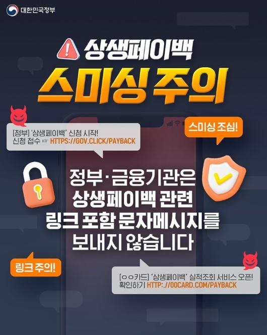[중앙뉴스라인, 양병남기자] 정부·금융기관은 상생페이백 관련 링크 포함 문자메시지를 보내지 않습니다.