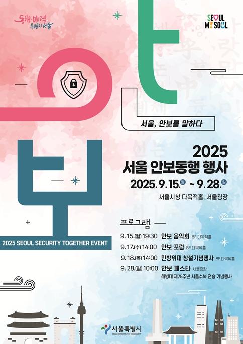 [중앙뉴스라인, 우제헌기자] 서울시는 시민들이 ‘안보’라는 주제를 직접 보고 듣고 체험하며 이해할 수 있도록 ‘참여형 축제’로 풀어낸 ‘2025 서울 안보동행 행사’를 9월 15일부터 28일까지 개최한다.