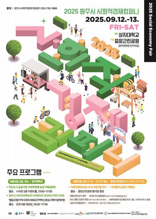 [중앙뉴스라인, 우제헌기자] 원주시는 오는 12일부터 13일까지 ‘2025 원주시 사회적경제컴퍼니(Come, Funny!)’를 개최한다.