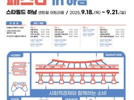 [중앙뉴스라인, 우제헌기자] 하남시는 추석을 앞둔 오는 9월 18일부터 21일까지 4일간 스타필드 하남 센트럴 아트리움에서 '2025년 더 좋은소비 페스타 in 하남'을 개최한다.