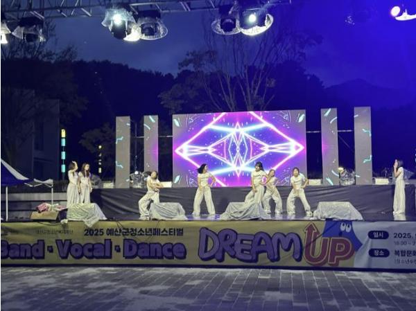 [중앙뉴스라인, 우제헌기자] 예산군청소년복지재단은 지난 6일 복합문화복지센터 다목적광장(청소년수련관 정문 앞)에서 청소년들의 재능과 열정을 한껏 발산할 수 있는 ‘2025 예산군청소년페스티벌 드림-업’을 성황리에 개최했다.