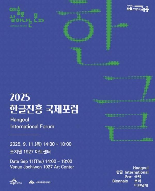 [중앙뉴스라인, 우제헌기자] 세종시문화관광재단은 오는 11일 오후 2시, 조치원 1927 아트센터에서 '2025 한글진흥 국제포럼'을 개최한다.