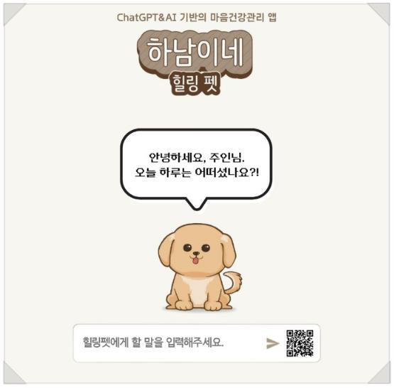 ‘하남이네 힐링펫’은 Chat GPT 기반의 AI 챗봇 앱으로, 귀여운 힐링펫 캐릭터와 대화하며 이용자의 심리적 부담을 줄여준다. 사용자는 앱 안에서 ‘감정일기’를 작성해 하루를 정리하고 내일을 계획할 수 있으며, AI는 대화를 분석해 우울·불안·스트레스 등 기분 상태와 심각도를 평가한다. 필요 시 전문가 상담으로 자연스럽게 연계되는 시스템을 갖췄다.