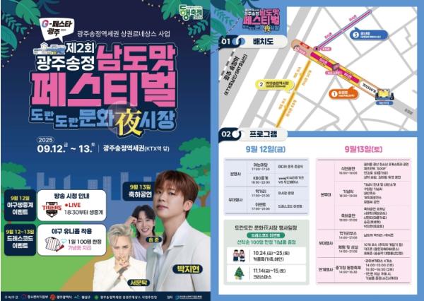 박병규 광산구청장은 “제2회 광주송정남도맛페스티벌이 단순히 먹거리 행사를 넘어 지역상권과 문화가 어우러진 종합 축제로 많은 사람이 광주송정의 맛과 멋을 느끼길 바란다”고 전했다.