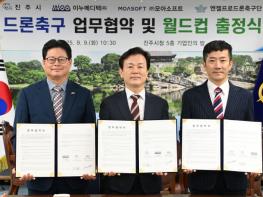 협약의 주요 내용은 ▲드론축구 월드컵 참가를 위한 행정적 지원과 홍보추진 지원 ▲대회 참가에 필요한 재정·물적 지원 ▲성실한 대회 참가와 후원 기관의 이미지 제고를 위한 홍보협력 ▲드론스포츠 활성화 및 장애인의 드론축구 참여 기회 확대 등을 위해 세 기관이 함께 노력한다는 것이다. 이번 협약은 지난 6월 ㈜모아소프트, 엔젤드론축구단과 체결한 업무협약에 이어 장애인의 드론축구 참여기회 확대를 위한 후속 협력의 일환으로 추진됐다.