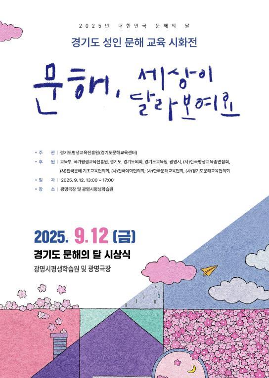 [중앙뉴스라인, 우제헌기자] 경기도평생교육진흥원은 세계 문해의 날(9월 8일)을 기념해 오는 12일 광명시평생학습원과 광명극장에서 ‘2025년 경기도 문해의 달’ 기념행사를 연다.