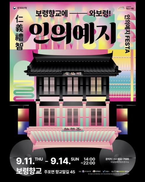 [중앙뉴스라인, 우제헌기자] 보령시는 보령향교 일원에서 9월 12일부터 14일까지 ‘보령향교에 와보령!(인의예지 FESTA)’ 행사를 개최한다고 밝혔다.