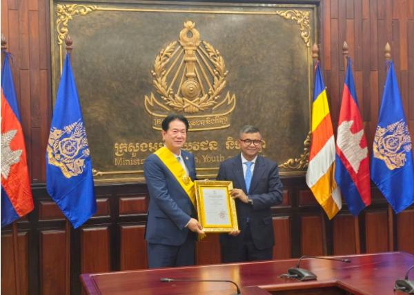 이날 수여식에는 항추온 나론(HANGCHUON NARON) 교육청소년체육부 장관 겸 캄보디아태권도협회 회장이 이 원장에게 훈장을 대리 수여했다.