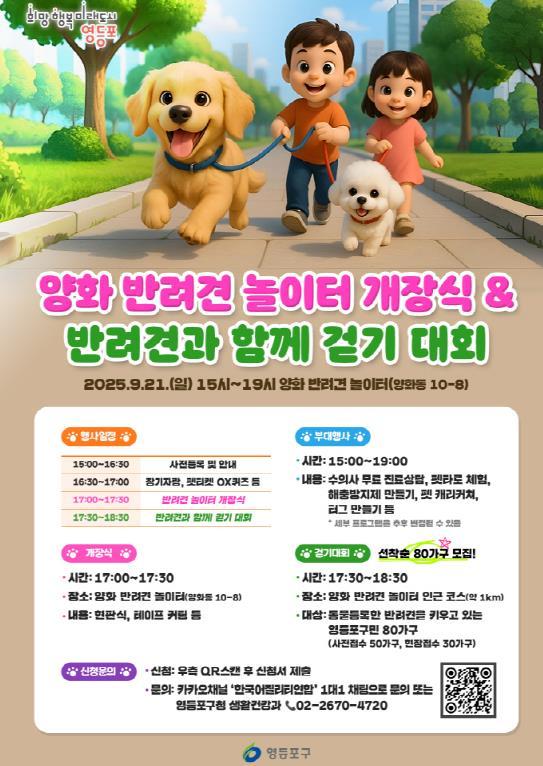 최호권 영등포구청장은 “양화 반려견 놀이터는 도심 속에서 반려견과 보호자가 함께 즐길 수 있는 소중한 공간이 될 것”이라며 “앞으로도 반려동물과 사람이 조화롭게 공존하는 건강한 문화를 만들어 가겠다”라고 전했다.