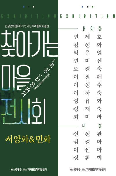 증평군지역활성화지원센터가 주관하는 이번 전시는 농촌창의사업 ‘찾아가는 문화 서비스’의 일환으로, 문화적 접근이 상대적으로 어려운 농촌 주민들에게 문화예술을 가까이에서 접할 수 있는 기회를 제공하고자 마련됐다.