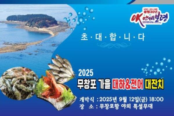 [중앙뉴스라인, 우제헌기자] 보령시는 12일부터 28일까지 무창포항 일원에서 ‘2025 무창포 가을 대하·전어 대잔치’를 개최한다고 밝혔다.