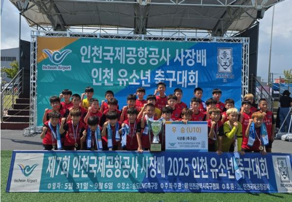 [중앙뉴스라인, 우제헌기자] 연수구청 유소년축구단(단장 이재호)이 제7회 인천국제공항공사 사장 배 인천 유소년 축구대회에서 10세 이하(U-10) 부문 우승을 차지했다.