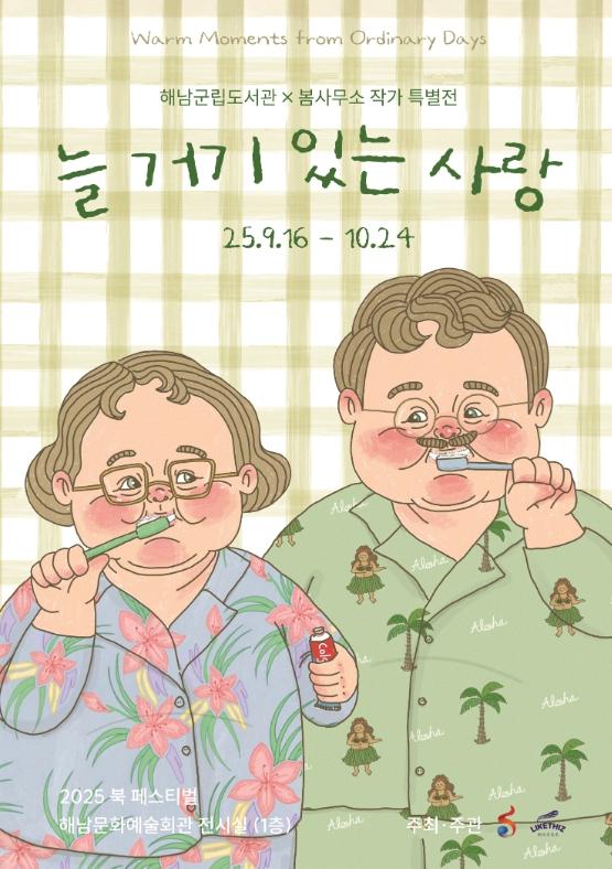 [중앙뉴스라인, 우제헌기자] 해남군립도서관이 오는 9월 16일부터 10월 24일까지 봄사무소 작가 특별전‘늘 거기 있는 사랑’을 문화예술회관 1층 전시실에서 개최한다.
