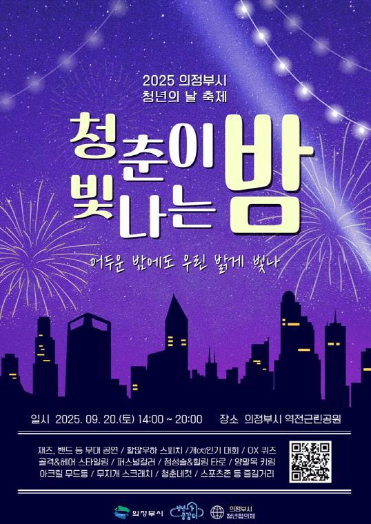 [중앙뉴스라인, 우제헌기자] 의정부시는 9월 20일 오후 2시부터 8시까지 의정부 역전근린공원에서 ‘2025년 청년의 날 축제(청춘이 빛나는 밤:청빛밤)’을 개최한다.