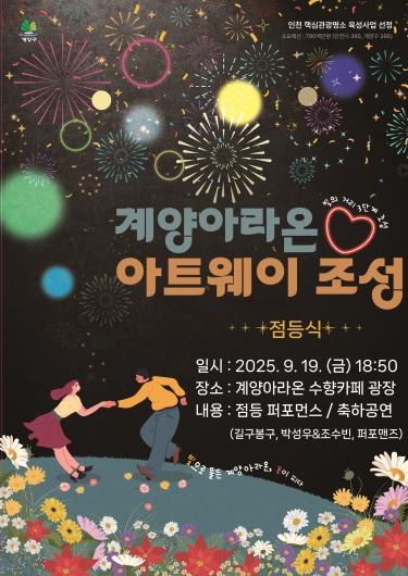 [중앙뉴스라인, 우제헌기자] 인천광역시 계양구는 오는 9월 19일 오후 6시 50분, 계양아라온 수향카페 광장에서 ‘계양아라온 아트웨이(빛의거리 3단계)’ 점등식을 개최한다고 밝혔다.
