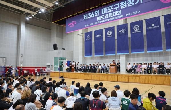 이어 오전 11시, 마포구민체육센터에서는 1,600여 명의 선수들이 참가한 배드민턴대회 개막식이 열렸다. 대회는 남녀 단식과 복식, 3대3 복식, 혼합복식 등 다양한 종목으로 진행됐다.
