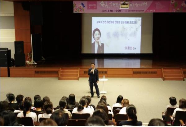 [중앙뉴스라인, 우제헌기자] 서울 성북구가 지난 10일 어린이집 영유아 보육의 질적 향상과 건강한 성장 지원을 위해 민간어린이집 보육교직원을 대상으로 힐링연수를 개최했다.