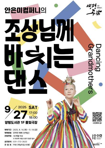 [중앙뉴스라인, 우제헌기자] 양평문화재단은 오는 27일 오후 5시, 양평도서관 물빛극장에서 2025년 시즌 레퍼토리 ‘양평 공감’의 일곱 번째 작품으로 안은미컴퍼니의 ‘조상님께 바치는 댄스’를 선보인다.