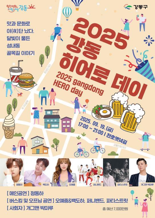 [중앙뉴스라인, 우제헌기자] 강동구가 오는 9월 19일 오후 5시부터 9시까지 성내동 천호옛길 일대에서 지역 골목상권 활성화를 위한 골목 축제 ‘2025 강동히어로 데이!!’를 개최한다고 15일 밝혔다.