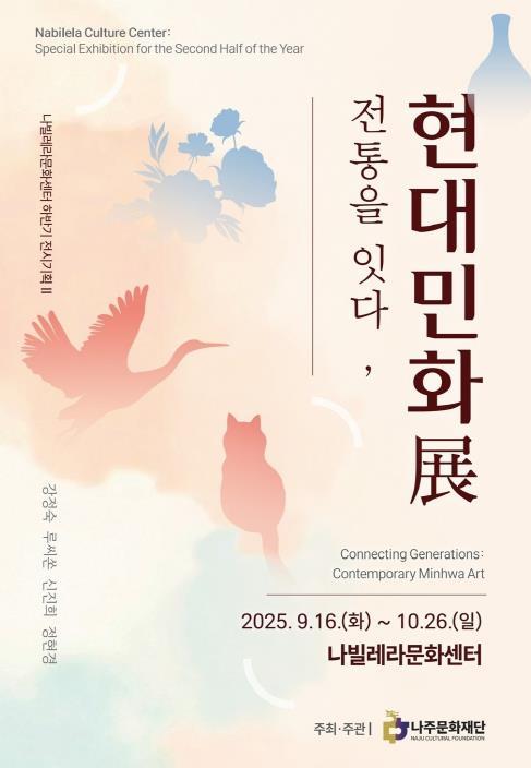 [중앙뉴스라인, 우제헌기자] 나주문화재단은 나빌레라문화센터에서 16일부터 10월 26일까지 하반기 기획전시Ⅱ‘전통을 잇다, 현대민화전(展)’을 개최한다.