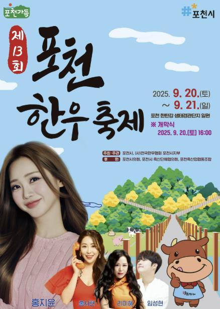 [중앙뉴스라인, 우제헌기자] 포천시는 오는 9월 20일부터 21일까지 이틀간 포천 한탄강 생태경관단지에서 ‘제13회 포천한우축제’를 개최한다.