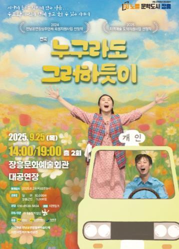 [중앙뉴스라인, 우제헌기자] 장흥군은 공연장협력예술단체 창작연극 ‘누구라도 그러하듯이’ 공연을 오는 9월 25일 14시, 19시 2회에 걸쳐 장흥문화예술회관에서 개최한다.