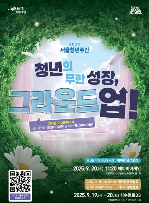 [중앙뉴스라인, 우제헌기자] 서울시가 청년의 날을 맞아 9월 19일부터 9월 30일까지 서울청년주간 행사를 개최한다. 성수동을 중심으로 서울 곳곳에서 청년의 성장과 도약을 주제로 한 다양한 행사가 가득 열릴 예정이다.