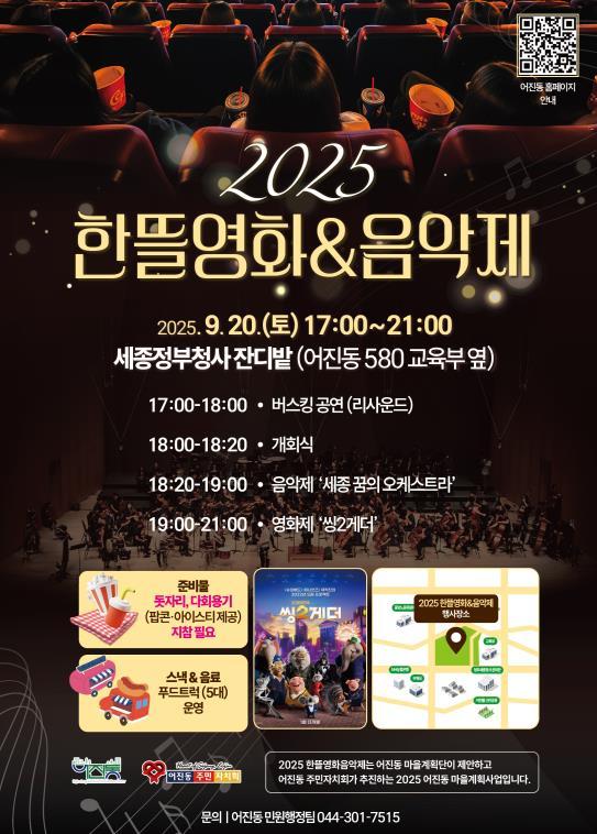 세종시, 가을밤 정취 품은 '한뜰영화·음악제' 20일 개최