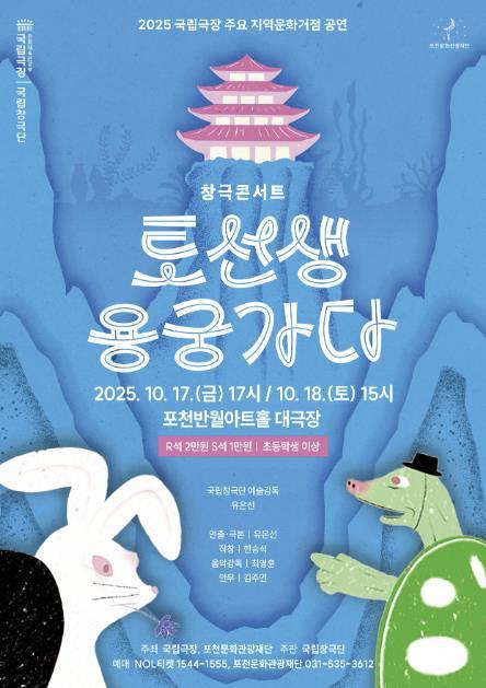 [중앙뉴스라인, 우제헌기자] 포천문화관광재단은 오는 10월 17일과 18일 양일간 포천반월아트홀 대극장에서 국립창극단의 창극콘서트 ‘토선생, 용궁가다’를 선보인다.