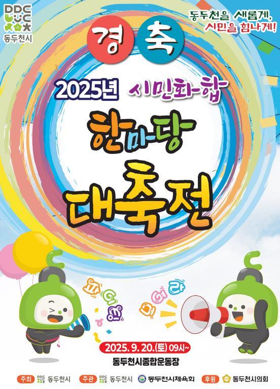 [중앙뉴스라인, 우제헌기자] 동두천시는 오는 9월 20일(토) 동두천 종합운동장에서 '2025 시민화합 한마당 대축전'을 성대히 개최한다. 행사는 동두천시가 주최하고 동두천시와 동두천시체육회가 공동 주관한다.