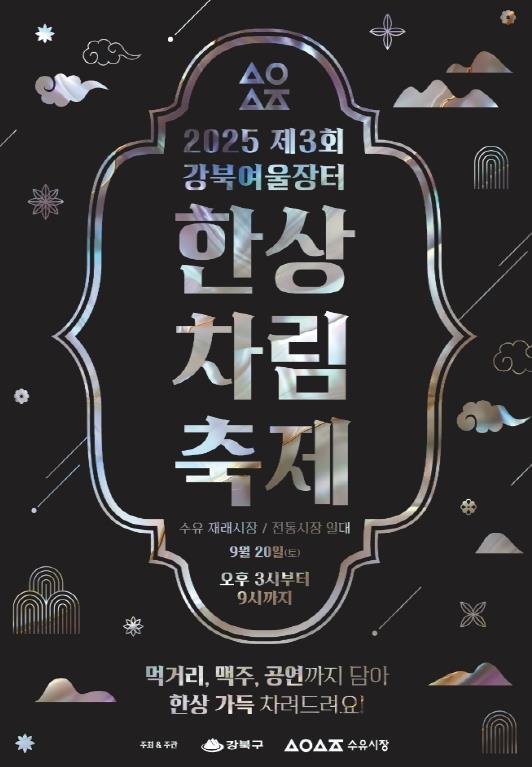 이순희 강북구청장은 “수유 한상차림 축제는 전통시장의 매력을 느낄 수 있는 특별한 자리”라며 “이번 축제를 통해 많은 분들이 전통시장 곳곳에서 맛과 정을 나누며 행복한 시간을 보내시길 바란다”고 말했다.