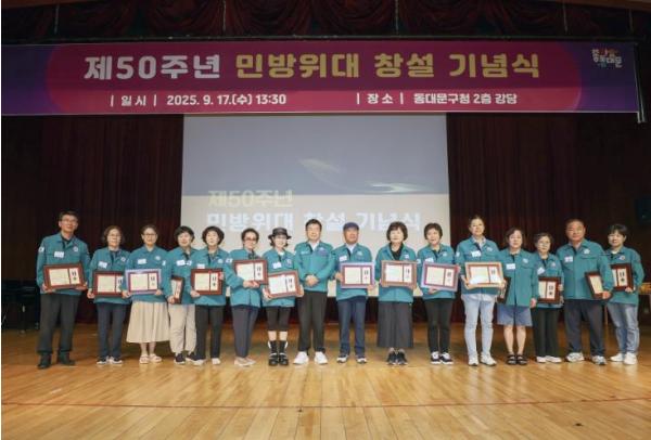 이필형 동대문구청장은 “민방위대는 지난 반세기 동안 국가와 지역사회의 안전지킴이로서 중추적 역할을 해왔다.”라며 “앞으로도 민방위대가 우리 사회 안전과 안보의 최전선에서 든든히 자리하길 바란다.”라고 말했다.