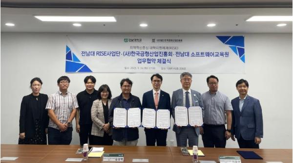 18일 전남대에 따르면 전남대학교 RISE사업단은 (사)한국금형산업진흥회(부회장 박재홍), 전남대학교 소프트웨어교육원(원장 김경백)과 함께 지역혁신중심 대학지원체계(RISE)를 기반으로 한 업무협약(MOU)을 16일 체결했다.
