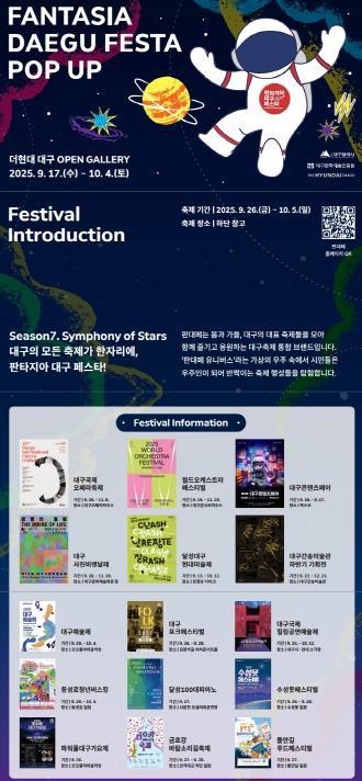 2025 판타지아대구페스타 가을 축제가 일곱 번째 시즌(Season7. Symphony of Stars 별들의 노래)을 맞아, 대구를 대표하는 15개 축제를 소개하는 팝업 전시와 함께 다양한 이벤트로 시민들을 찾아간다.