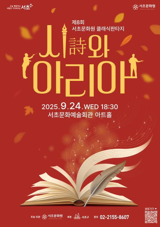 [중앙뉴스라인, 우제헌기자] 서울 서초구는 오는 9월 24일 오후 6시 30분, 서초문화예술회관 1층 아트홀에서 '제8회 클래식 판타지: 시詩와 아리아'를 개최한다고 밝혔다.