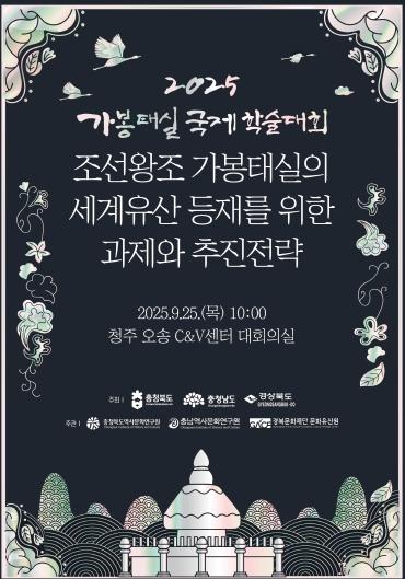 [중앙뉴스라인, 우제헌기자] 충청남도와 충남역사문화연구원(원장 장기승)은 오는 9월 25일, 청주 오송 C&V센터에서 ‘조선왕조 가봉태실 세계유산 등재를 위한 과제와 추진 전략’이라는 주제로 국제학술대회를 개최한다. 이번 학술대회는 충청남도, 충청북도, 경상북도가 공동 주최하고, 각 도가 출연한 국가유산 분야 연구기관이 공동 주관한다.