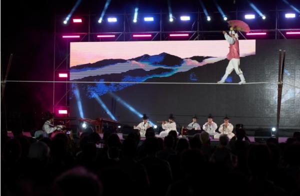 첫날 5일시장에서 펼쳐진 거리공연은 풍물과 마술로 흥을 돋우며 축제의 서막을 열었고, 둘째 날 개막제는 줄광대 공연, 명창들의 판소리, 학춤과 창작 연주가 어우러진 주제공연으로 관객들을 사로잡았다.