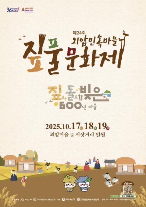 [중앙뉴스라인, 우제헌기자] ‘K-컬쳐’ 열풍이 전 세계를 휩쓸고 있는 가운데, 가장 ‘한국적인 마을’로 불리는 아산시 송악면 외암민속마을에서 특별한 가을 축제가 열린다. 오는 10월 17~19일 외암마을과 저잣거리 일원에서 펼쳐지는 ‘제24회 외암마을 짚풀문화제’가 그 무대다.