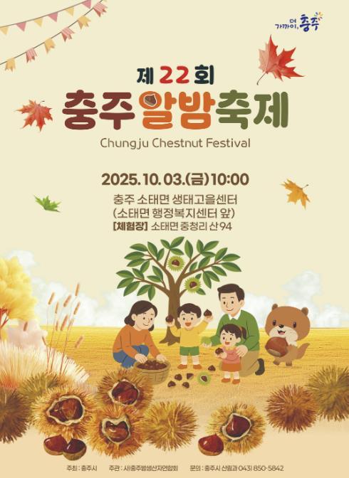[중앙뉴스라인, 우제헌기자] 전국 최고의 품질을 자랑하는 충주 알밤을 주제로 한 제22회 충주 알밤축제가 오는 10월 3일 오전 10시, 충주시 소태면 생태고을센터(소태면행정복지센터 앞) 일원에서 열린다.