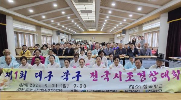 [중앙뉴스라인, 우제헌기자] 대구 북구청은 지난 9월 21일 칠곡향교에서 달구벌시조창연구회 주관으로 ‘제1회 대구 북구 전국시조경창대회’를 개최했다고 밝혔다.