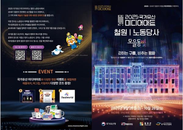 [중앙뉴스라인, 양병남기자] 철원군이 오는 9월 26일부터 10월 26일까지 한 달간 ‘2025 국가유산 미디어아트 철원 노동당사' 행사를 개최한다고 발표했다. 이번 행사는 철원 노동당사와 철원역사문화공원 일대에서 오후 7시 30분부터 9시 30분까지 진행되며, 철원의 야간 관광 활성화를 위한 새로운 시도로 주목받고 있다.