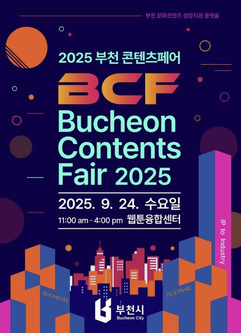 [중앙뉴스라인, 우제헌기자] 부천시는 9월 24일 오전 11시 웹툰융합센터에서 ‘2025 부천 콘텐츠페어’를 연다. 이번 행사는 ‘From IP to Industry’를 주제로 우수 콘텐츠 지식재산권(IP)의 비즈니스 확장, 투자유치, 판로개척을 지원하기 위해 마련됐다.
