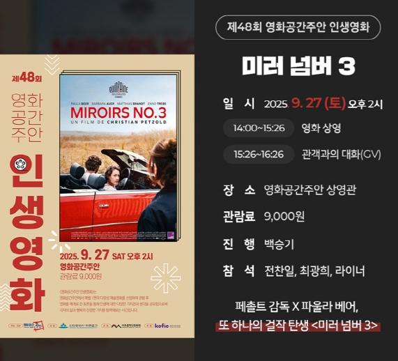 미추홀구의 영화공간주안, ‘제48회 인생 영화’ 개최…칸 초청작 ‘미러 넘버 3’ 상영