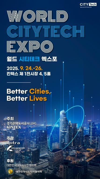 경기주택도시공사(GH)는 9월 24일부터 26일까지 고양 킨텍스(KINTEX)에서 도시 기술의 미래를 직접 보고 체험할 수 있는 ‘2025 월드 시티테크 엑스포(World CITYTech Expo 2025)’를 개최한다고 23일 밝혔다.