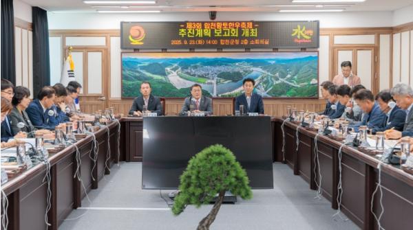 [중앙뉴스라인, 우제헌기자] 합천군은 9월 23일 군청 2층 소회의실에서 제3회 합천황토한우축제 추진계획 보고회를 열었다. 이번 보고회는 합천축산업협동조합(조합장 김용욱)이 주최·주관하고 합천군과 합천군의회가 후원하는 행사로, 축제의 성공적 개최를 위해 진행 상황을 점검하고 부서 간 협력 체계를 공고히 하기 위해 마련됐다.