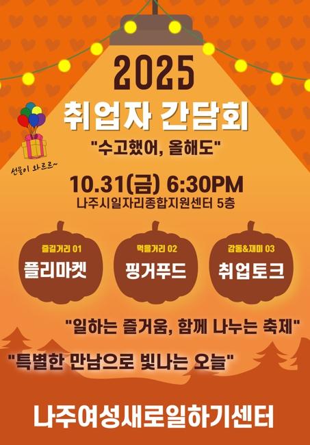 나주여성새로일하기센터(센터장 최진아)는 오는 10월 31일 나주시 일자리종합지원센터에서 지역 여성 취업자 50여 명이 참여하는 취업자 간담회를 개최한다.