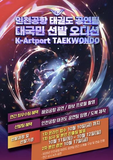 [중앙뉴스라인, 우제헌기자] 인천국제공항공사는 인천공항에서 진행되는 태권도 상설공연인 ‘2025-2026 인천공항 태권도 상설공연’에 참여할 태권도 전문 공연팀을 공개 모집한다고 28일 밝혔다.